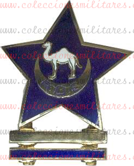 Media luna de oro entre cuyos cuernos va un dromedario blanco, capa especialmente distinguida sobre la ordinaria terrosa, de 40 por 50 milímetros; sobre la media luna, y en letras azules lleva la inscripción ÁFRICA OCCIDENTAL ESPAÑOLA