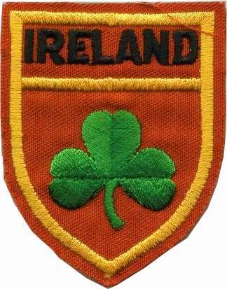 Overseas flash red base with yellow border, green shamrock and the inscription IRELAND in black |